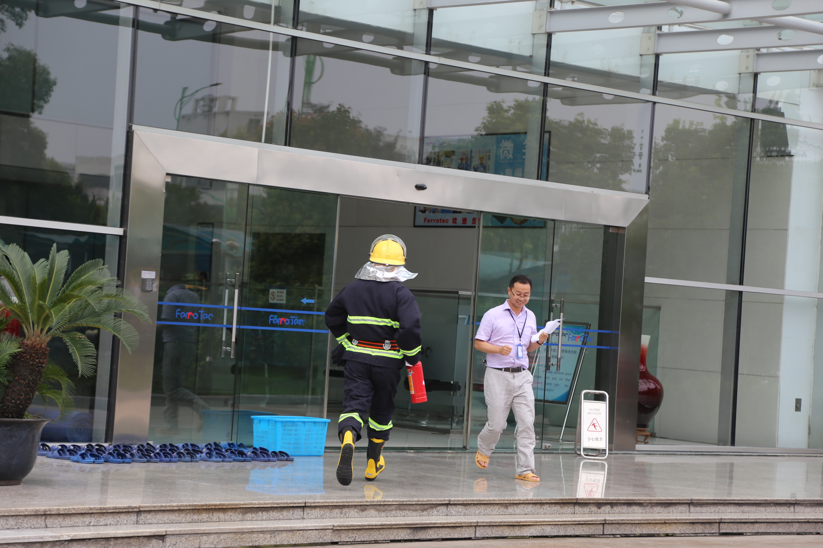 从疏散时间来看,一工厂和二工厂分别为2分半钟和1分半钟左右,二工厂比去年有所进步,而一工厂则明显差于去年。一工厂参演人员在疏散过程中大部分人不慌不忙,慢吞吞地走到紧急集合点,个别员工甚至边走边打电话,没有以最快的速度撤离(模拟)火场。而在消防器材实操演练阶段,一、二工厂员工参与积极性均较差,在组织人员再三催促下,参与实操演练的仍很少。